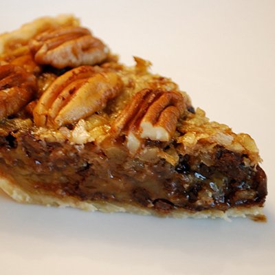 Neem het bakblik uit de oven en verdeel denoten over de taartbodem. Schenk de karamelsaus erover en bak nog 20 minuten in de oven. Laat voor serveren helemaal afkoelen.